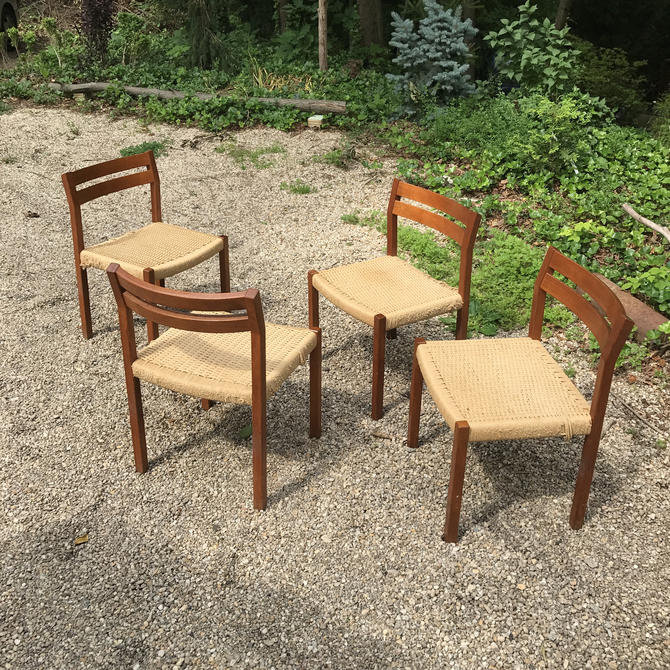 Four Set Niels Otto Moller Teak Dining Chairs Danish Vintage Mid Century Modern C 1969 Denmark Woven Cord Rope Rush By Brainwashington